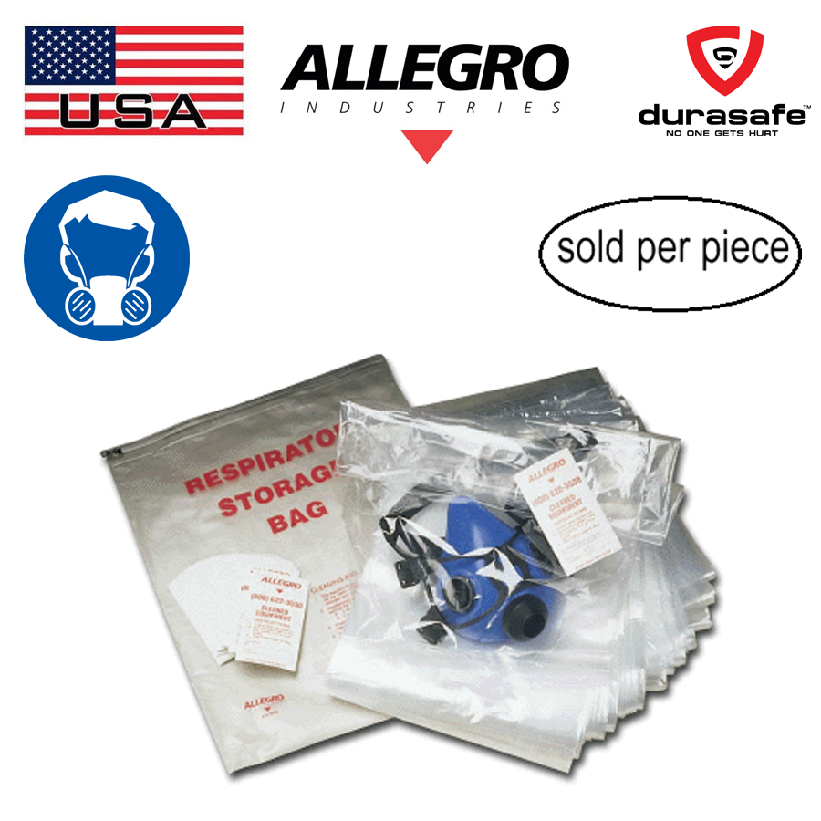 Keep personal safety equipment free of contamination. Respirator Bags are made of tough 10 mil poly to last longer and hold half or full face masks. Reusable bags feature a zip closure and cleaning instructions printed on the bag.