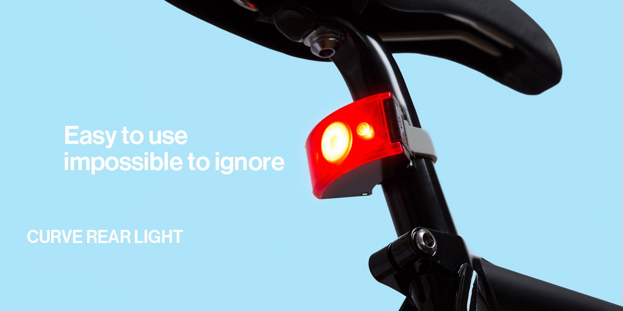 Curve Rear Light is a bright, USB rechargeable bike light. It has a maximum brightness of 37 lumen and a run time of up to 24 hours.