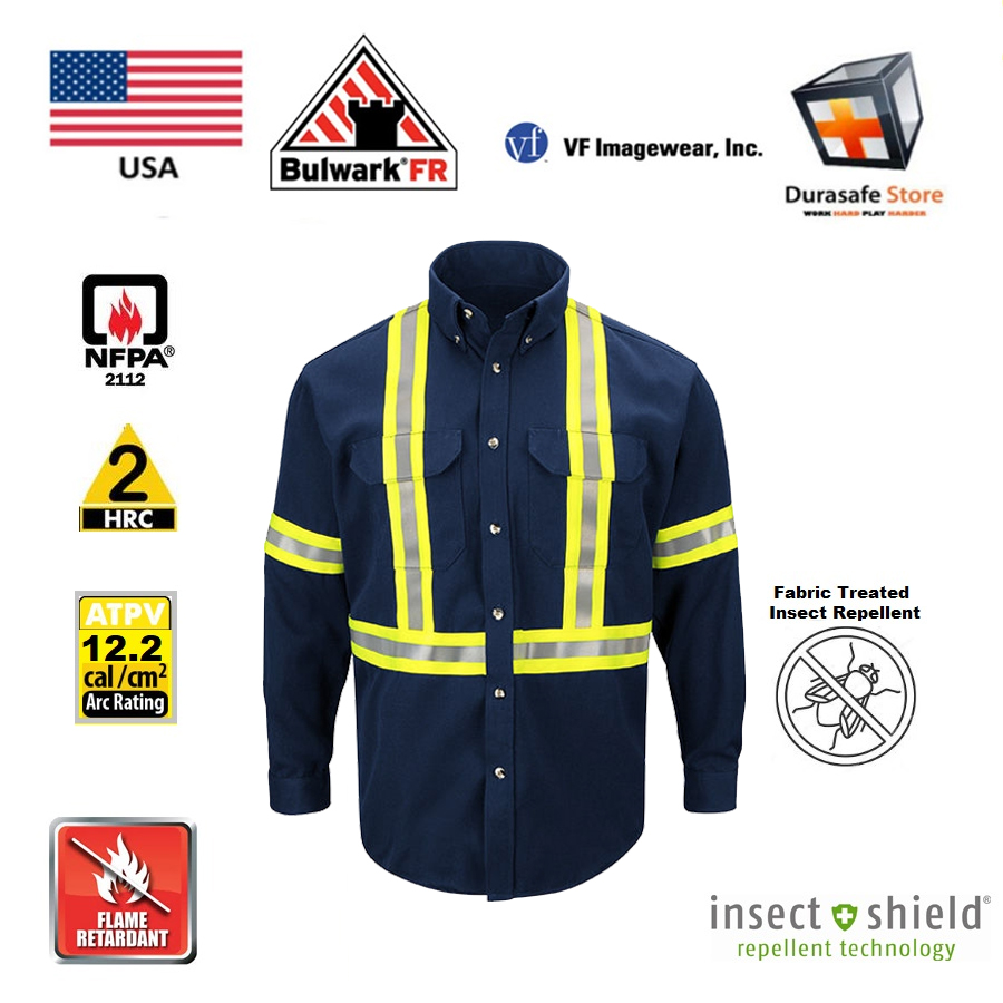 This premium flame-resistant shirt has an Arc rating of 8.6 calories/cm^2 ATPV (Arc Thermal Protection Value) which will help protect you in those environments where electrical safety is a concern. This tee is also manufactured with 88% cotton and 12% nylon. The ammonia cure process makes this navy blue shirt flame-resistant and good looking, too. It is also lightweight and comfortable weighing only 7-ounces, so you won’t be weighed down by all the protection.