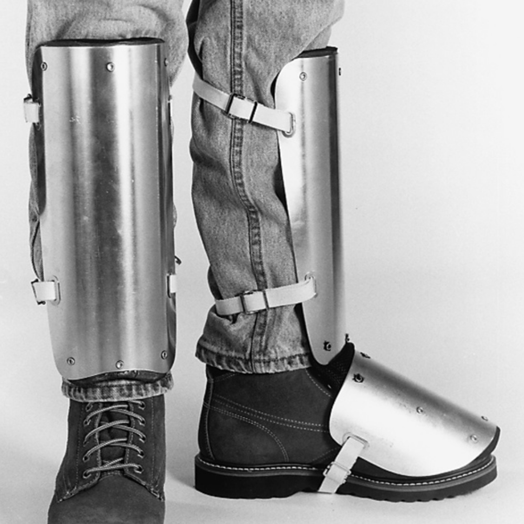 Aluminum alloy Shin Guards are padded at the top and bottom to absorb shock and provide comfort. Guards measure 12″ high, 5″ wide at top and 3″ wide at bottom. They attach with 5/8″ web straps.