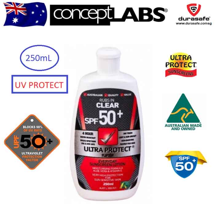 Ultra Protect SPF50+ Sunscreen Lotion with Aloe Vera and Vitamin E has been formulated to provide very high protection against the sun’s damaging UVA & UVB rays. It is ideal for sun sensitive skin and children and maintains its rating for up to 4 hours in the water or perspiration. Aloe Vera and Vitamin E have been added to maintain the appearance of healthy skin.