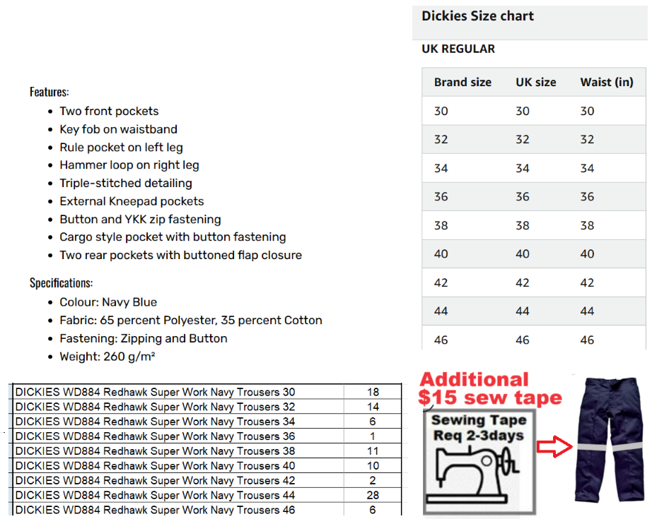 These are by far the most popular, value driven Dickies work trousers. Helping you to perform with the quality assurance you deserve, they come loaded with deep pockets and a hammer loop for carrying all your essential equipment. Triple stitched seams also ensure great durability. Full product details are in the specification below showing these to be suitable for a wide variety of trades.?Don’t forget to add Dickies knee pads to your selection!