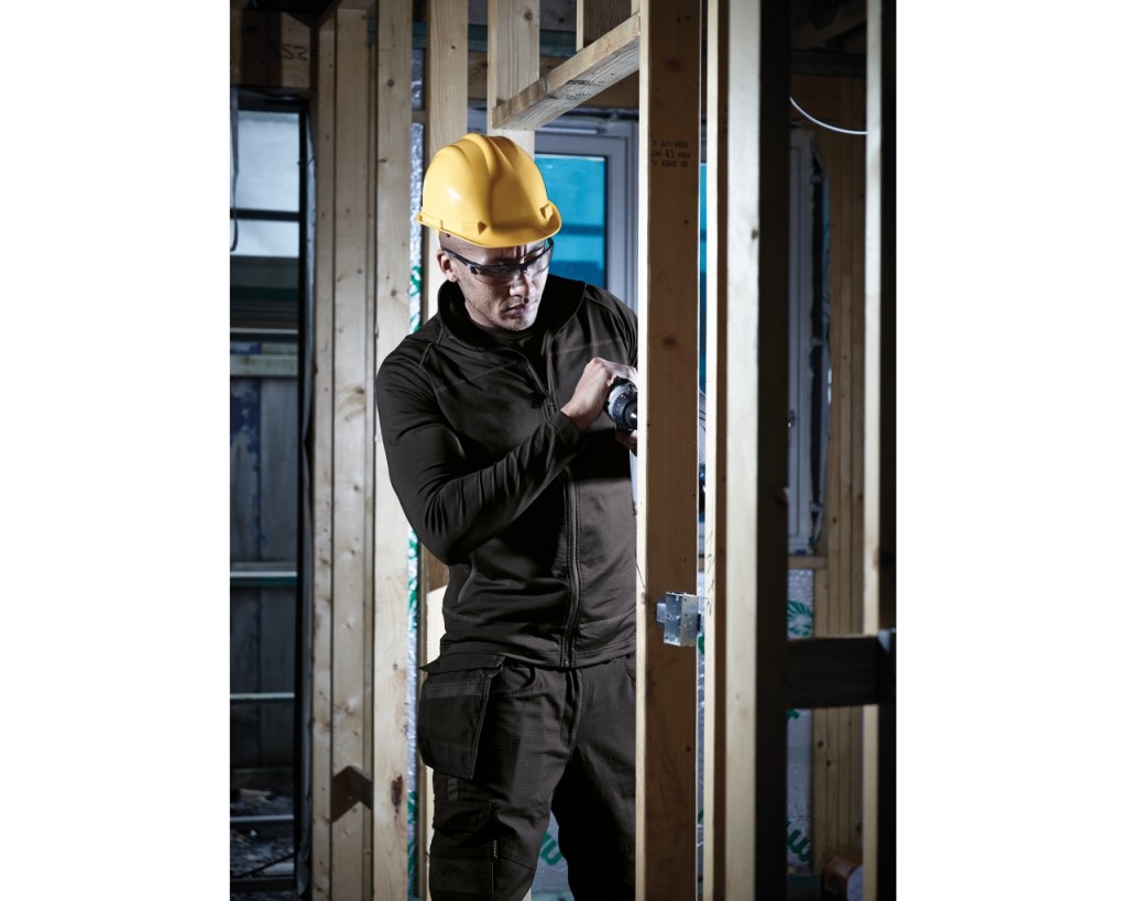 The Laton is a modern product released in 2015. A full zip through stretch top, which is designed to close fitting and is therefore sized smaller than the majority of our products to give that close, tight fit required from modern fashionable garments. The coverstitch is in a contrast colour to give a touch of style to the garment & there is embroidery on the back of the collar featuring Dickies branding.