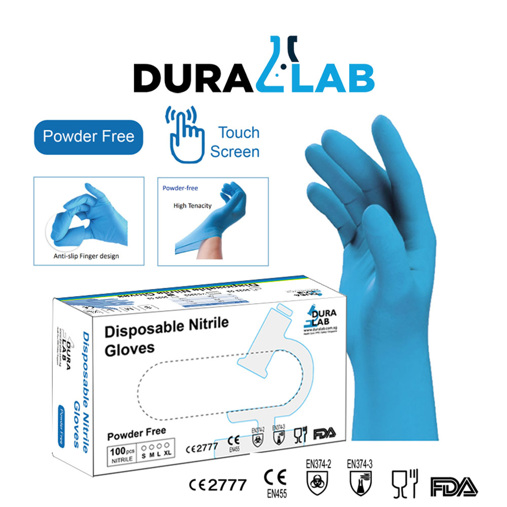 DURALAB Disposable Nitrile Glove Powder Free Blue 100 Pcs/Box, Size M-XL