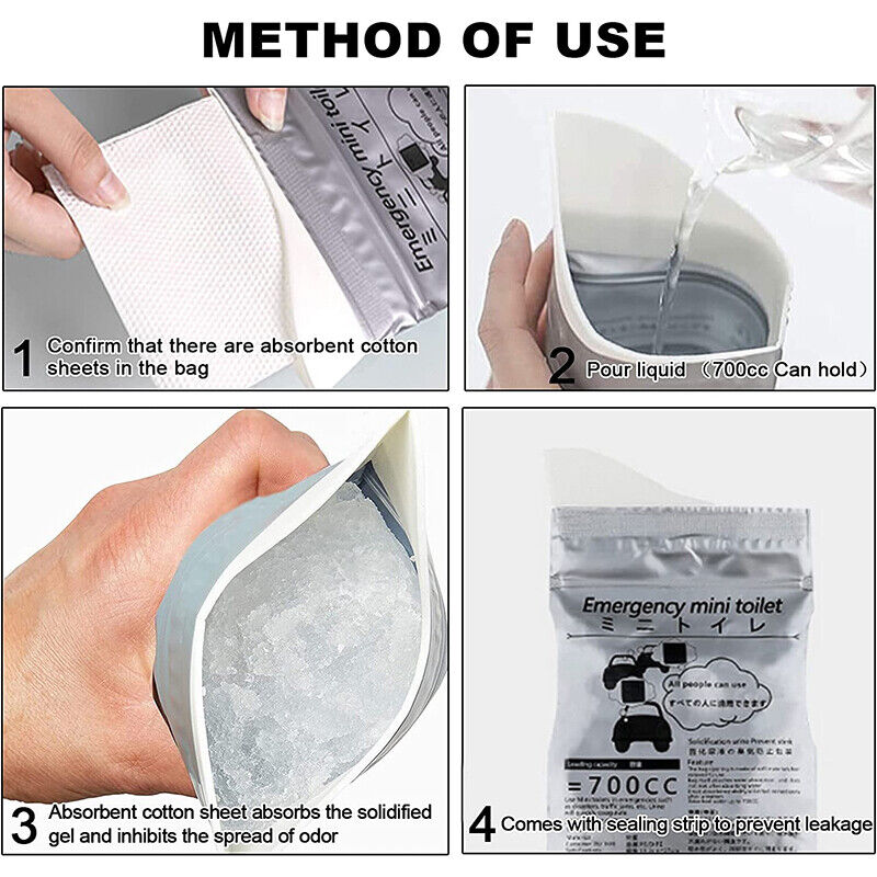 The urine bag is widely suitable for car, airplane, camp ground, construction site and other places, where regular toilets are not immediate available, perfect for patient and pregnant using.