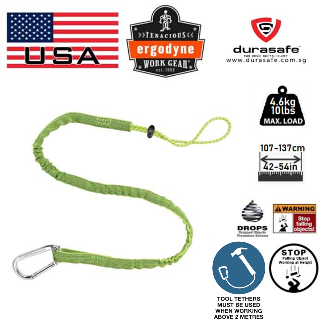 Tool Lanyard-Single Carabiner: Tethers tools to help worker prevent injury, damage and lost productivity from dropped tools.