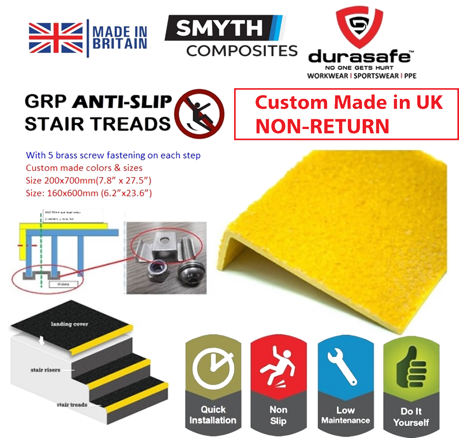 | GRP Stair Sizes | 200x700mm(7.8” x 27.5”), 160x600mm (6.2”x23.6”), 150x900mm, 55x900mm |