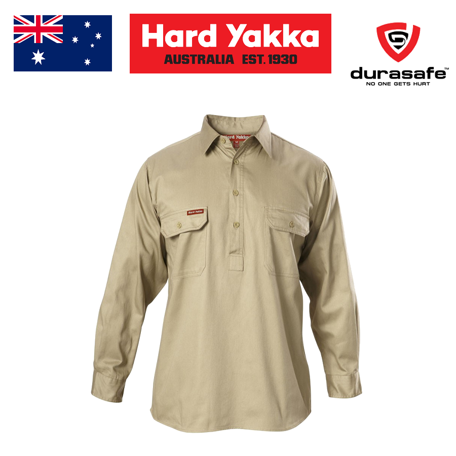 Get the job done with this no-nonsense long sleeve, cotton drill shirt with a closed front for safety and hi-vis day use option.