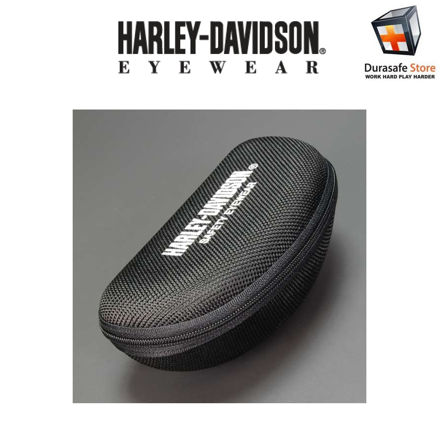 Harley-Davidson logo is the safety glass case. It is fit with big eyes safety glasses. You can retrieve the glass easily even if gloves clip to zipper so to case comes with belt loops.