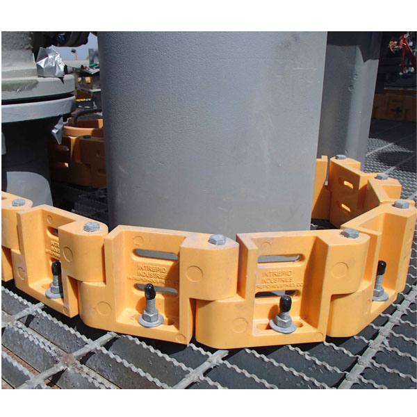Toeboard Links (T5) are designed to easily enclose unwanted openings, gaps, and penetrations found in walking surface areas. Intrepid Toeboard Links are designed to encircle piping of all sizes found in and around grating and deck plate. The Intrepid Toeboard Links are manufactured from our rigid, noncorrosive polyurethane, making the T5 resistant to outdoor exposure and harsh environments.