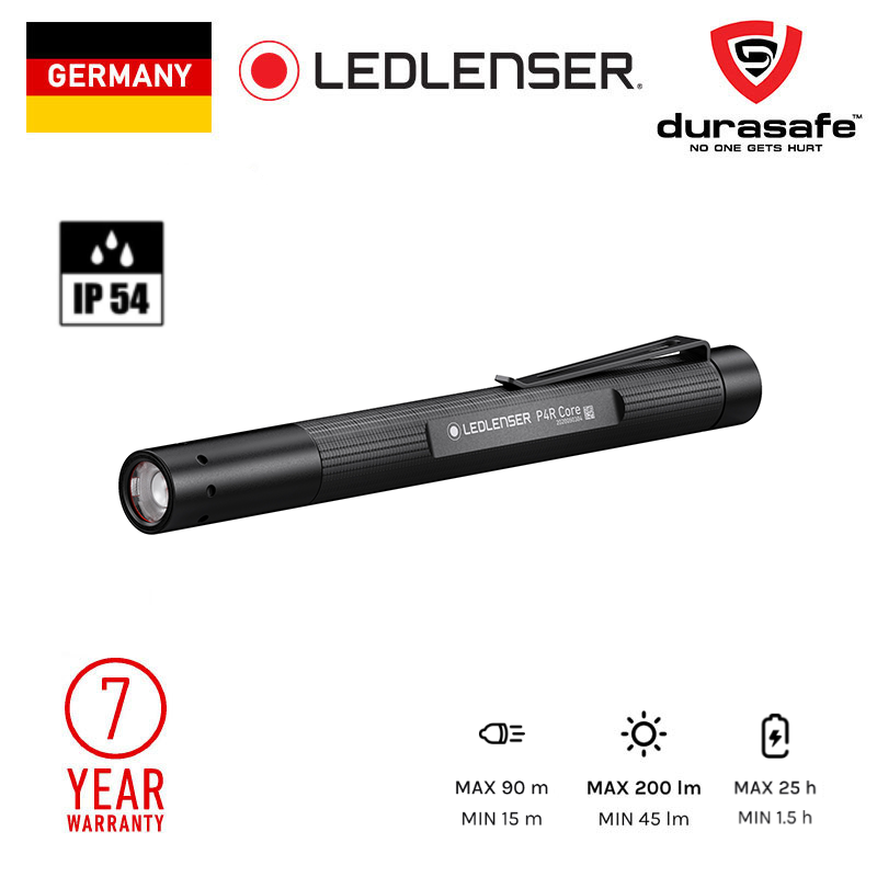 The Ledlenser P4R Core penlight delivers light output of 200 lumens and has a removable rechargeable battery with micro-USB interface for eco-friendly charging. It offers a slim, lightweight design with end cap switch and pocket clip. The Ledlenser Advanced Focus System allows you to easily go from a spot or flood light without losing the quality of light.