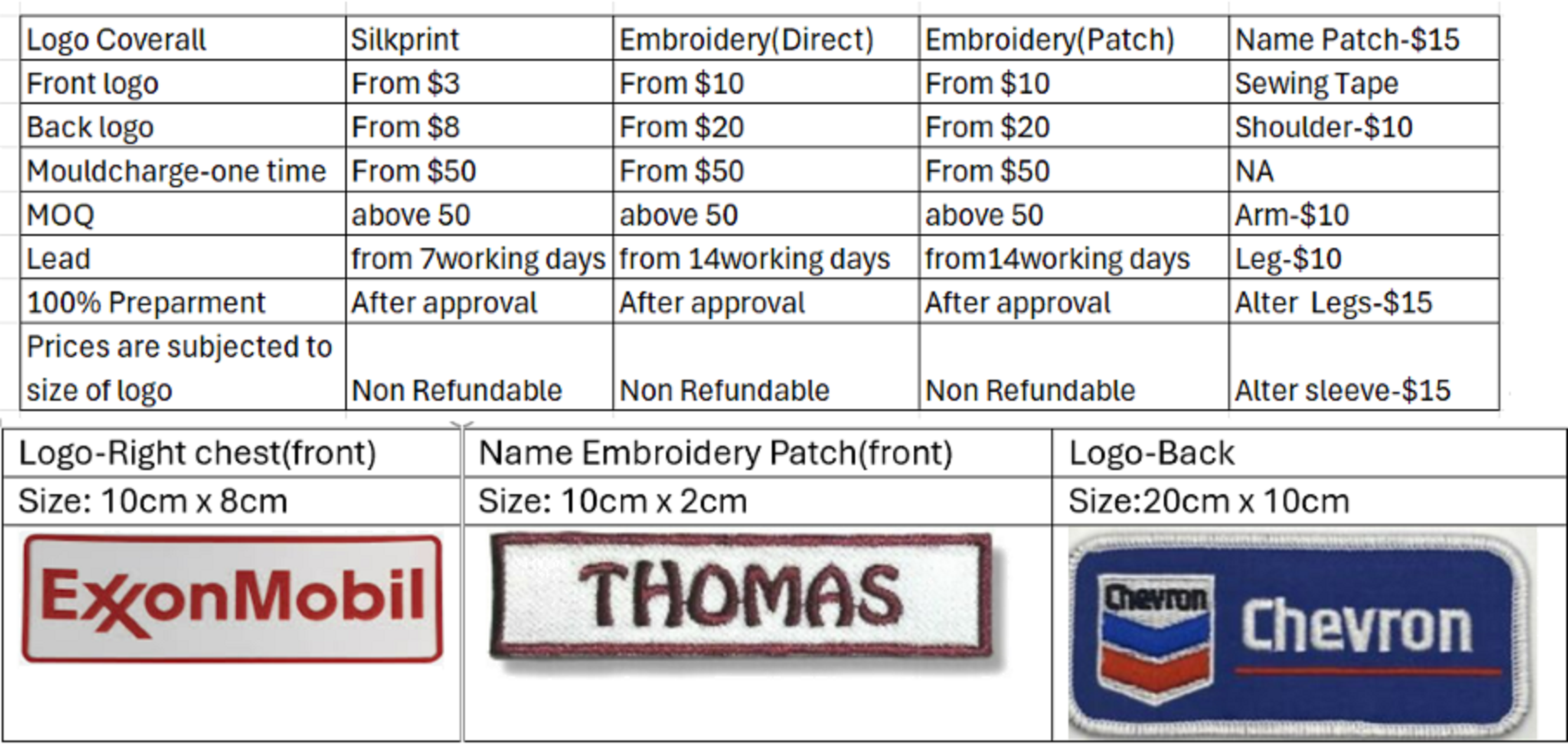| Type | Silkprint, Embroidery (Direct), Embroidery (Patch) |