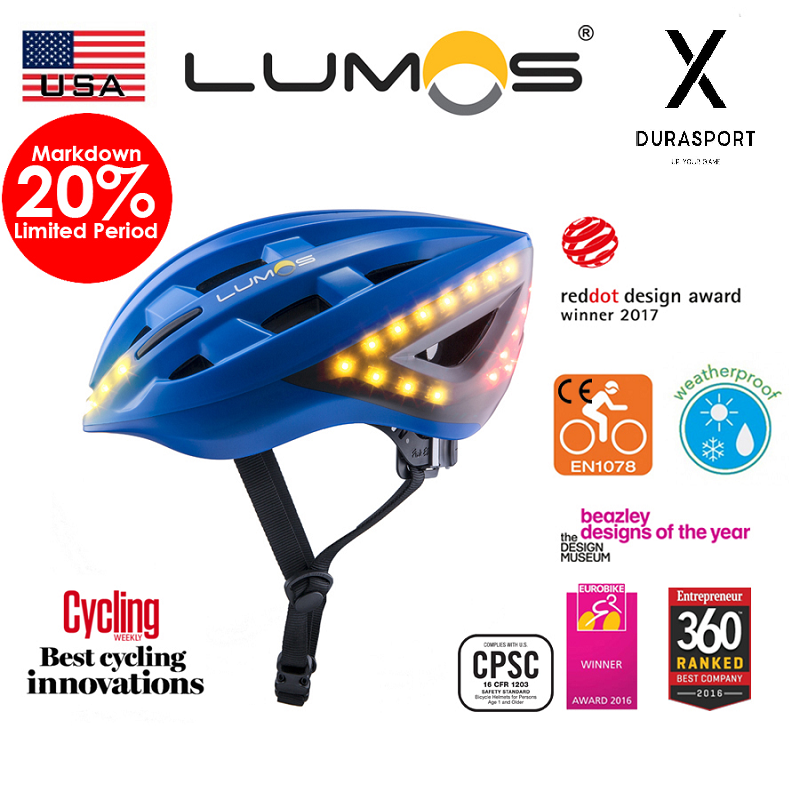 Lumos features bright left and right turn signals on the helmet activated via a wireless remote on your handlebar.