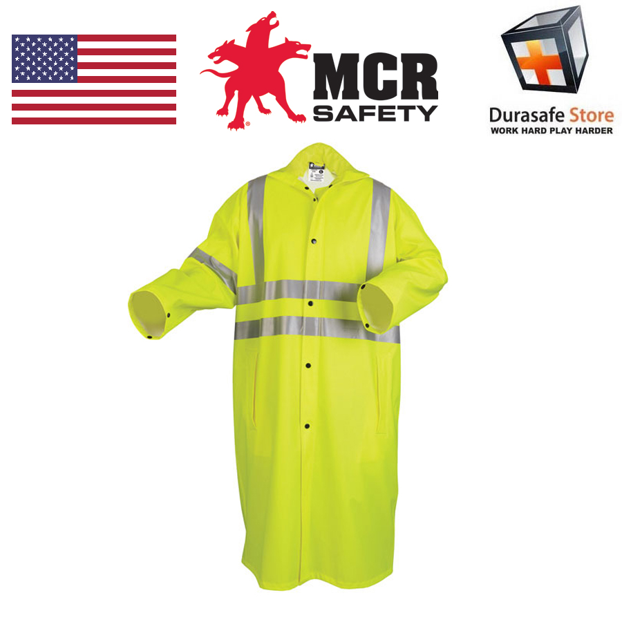 For those applications where being seen is of the utmost importance, MCR Safety’s Luminator™ Series offers you a variety of high visibility garments made in different colors and different options of reflective material. The 518C is a fluorescent lime 49 inch coat that features dual silver reflective stripes around the torso and stripes over each shoulder. It also features a hide away hood, meets or exceeds ANSI/ISEA Class 3 high visibility standards, and has a snap front with storm fly. This garment is treated to be limited flammability.