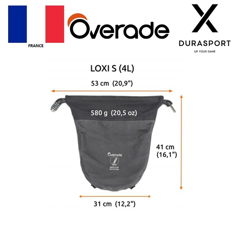 The Loxi bag includes a cut-resistant layer made of a blend of fiberglass, polyester and UHMWPE, a material 40% stronger than Kevlar. The anti-theft cable is 12 mm in diameter and the 4-digit code padlock.