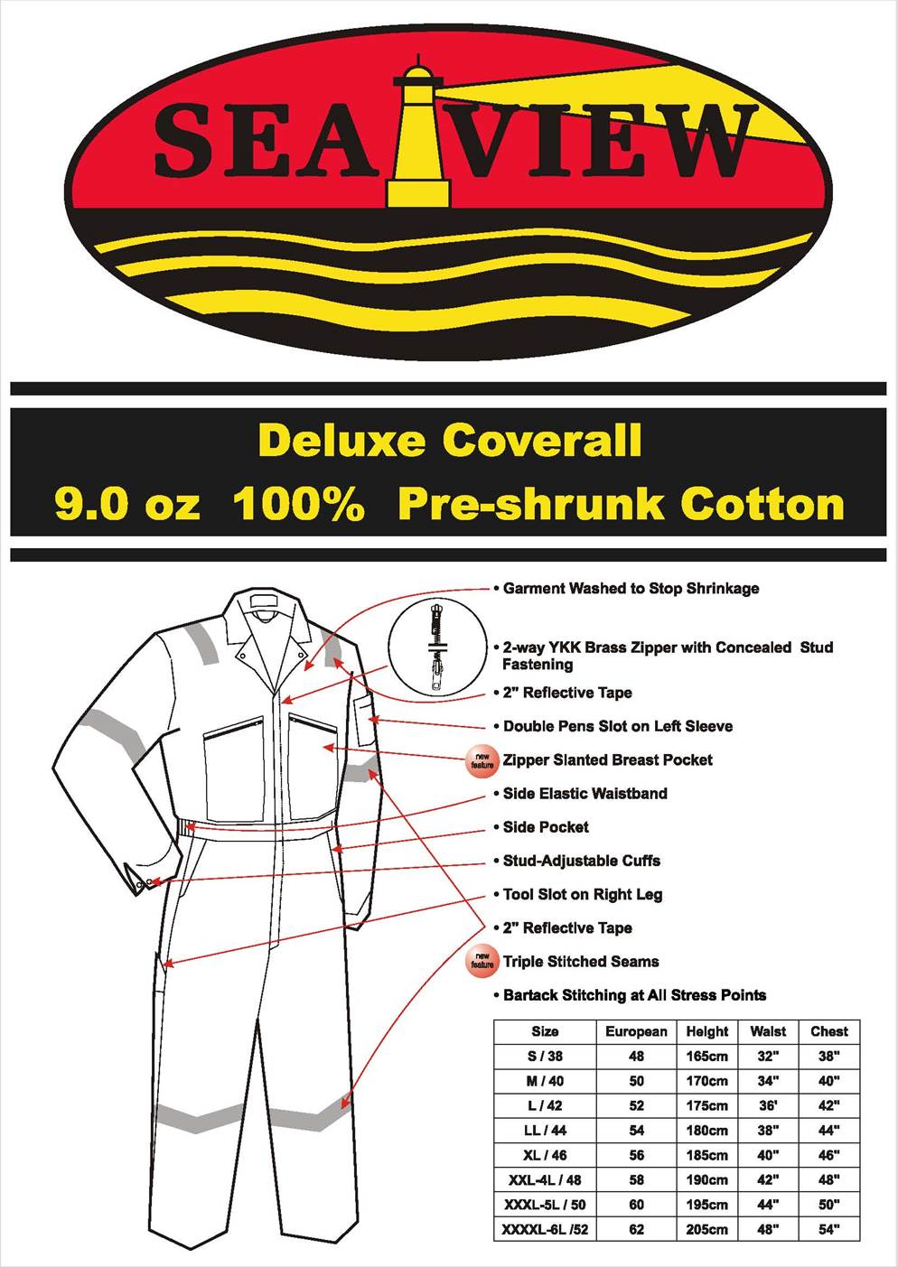 • This coverall has 2-way self-locking heavy-duty YKK brass front zipper with concealed stud fastening