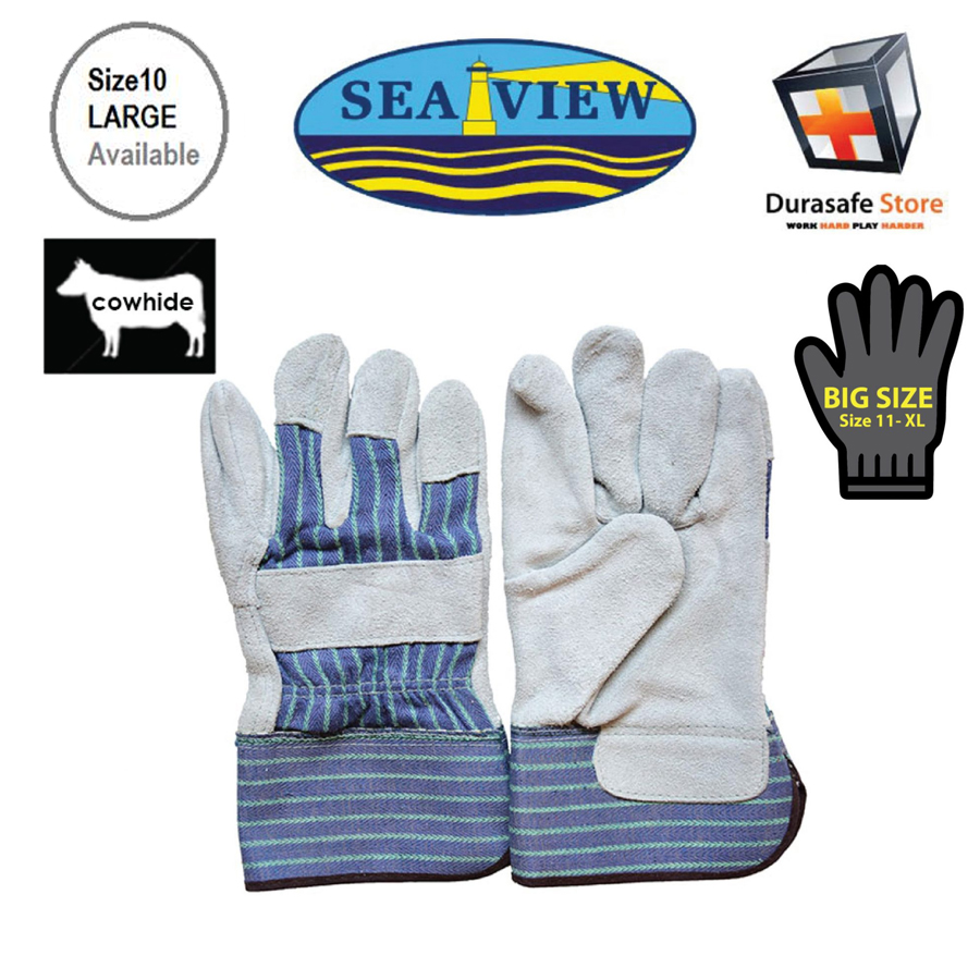 SEAVIEW™ GL10 10½” Cow Split Gray Leather Palm Glove Striped Cotton Back with 2½” Safety Cuff Size 9,10