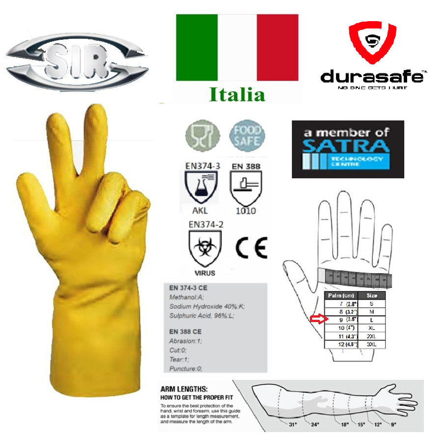 • Gloves has non-flock chlorinated lining