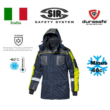 Waterproof safety boot designed for rescue and emergency teams; heat resistant vulcanised rubber upper, tractor tread sole with fire resistant, acid resistant, wear-and-tear, anti-slip, heat resistant and heat and cold insulating characteristics. With 200 joule toecap, steel midsole, ankle and heel reinforcement, heavy canvas cotton inner lining and pull-straps.