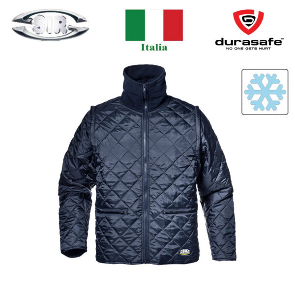 Jacket made in elastic and breathable nylon fabric, 160 g/m² padding, sleeves detachable by zipper, central nylon zipper closure, high turtleneck collar in soft fleece fabric, two pockets with concealed zipper closure.