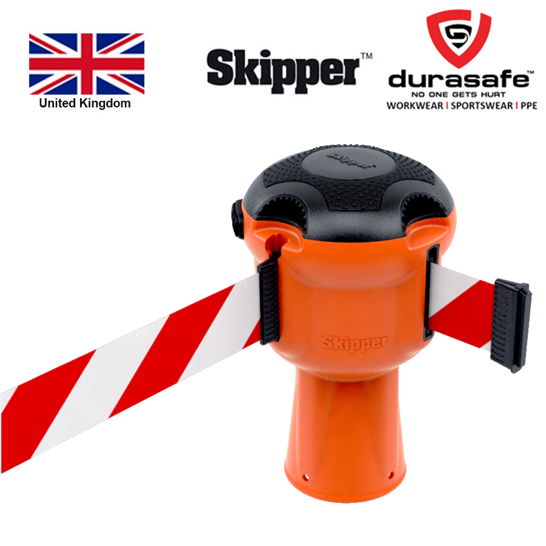 Skipper: the unique way to cordon off any outside area, creating safer environments with high visibility retractable 9m tape. Skipper simply clicks on top of most traffic cones, saving time, storage space and money. It pays for itself in months over throw away barrier tape.