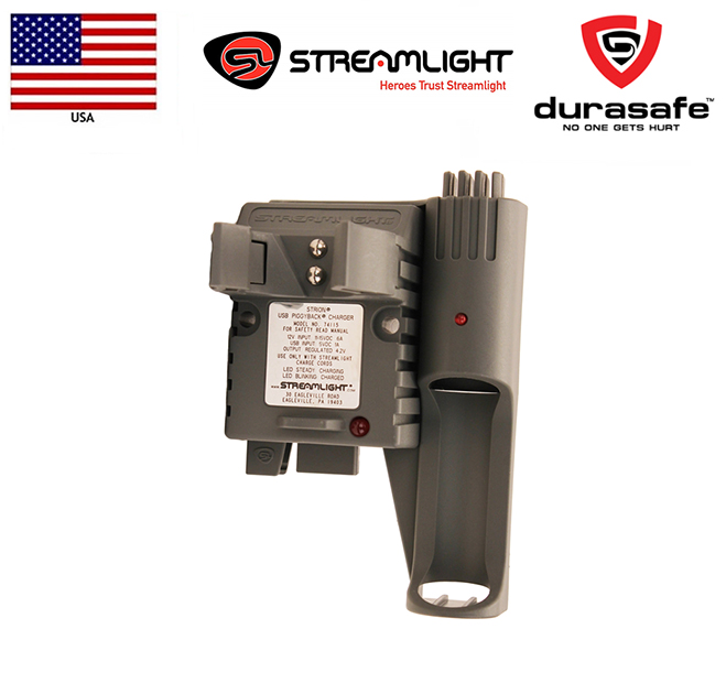 Charge up your reliable and powerful Streamlight Strion flashlight with this convenient charging cradle. Compatible with both USB and DC powered setups, this charger can adapt to your location providing fast charging wherever you need it.