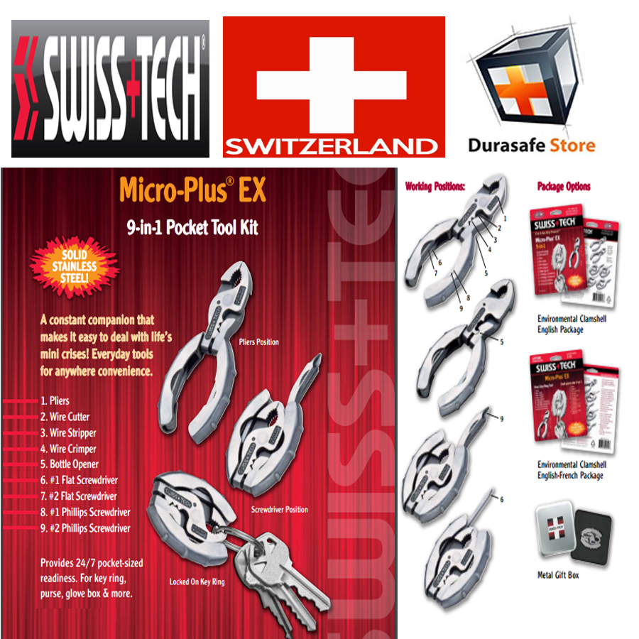 Like all Swiss Tech tools, a patented quick release mechanism securely locks the Micro-Plus EX onto a key ring. Solid stainless steel construction provides a lifetime of convenience, comfort and readiness.