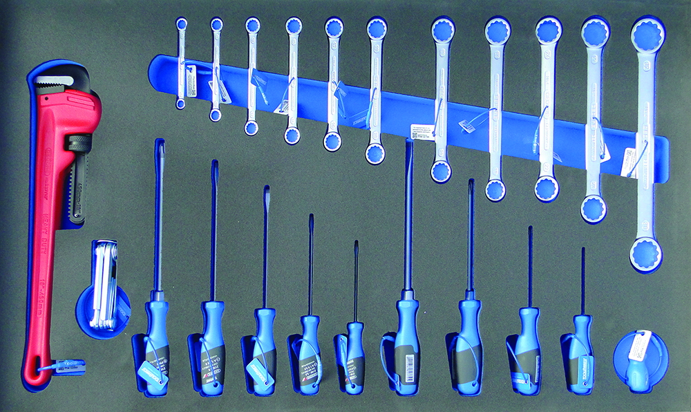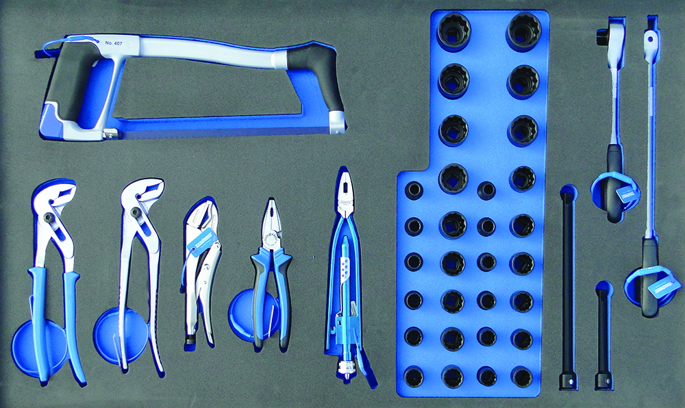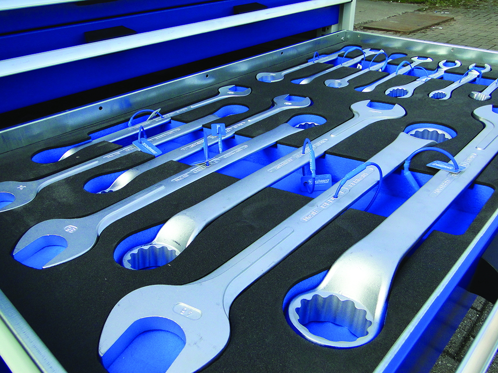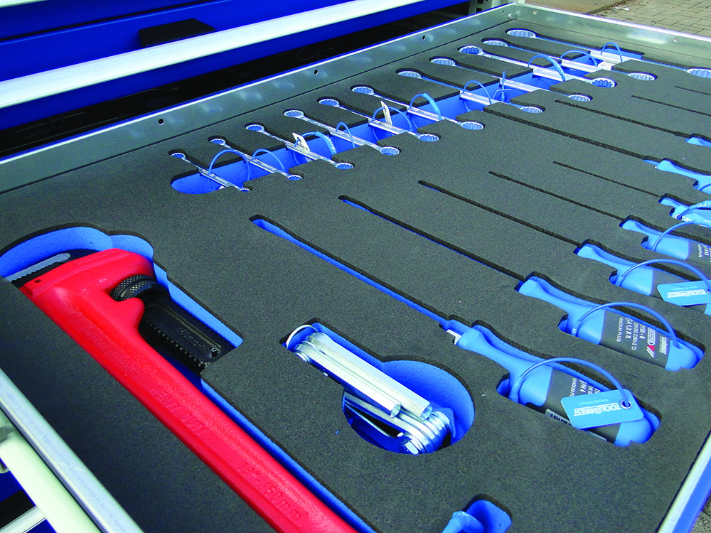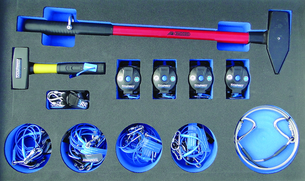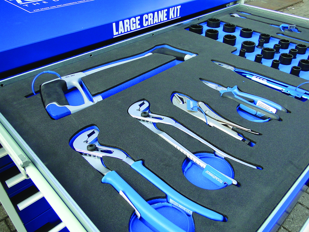 Secured in foam lined 6-drawer tool chest with forklift base for easy handling. Developed specifically for larger departments or fixed installations where greater tool choice trumps mobility.