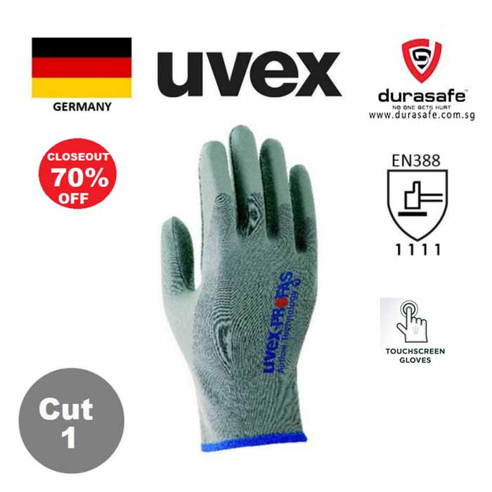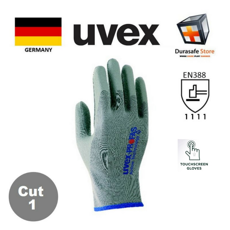 UVEX 60308 Airflow Technology NBR Coated Cotton Glove Grey 25cm Safety Gloves