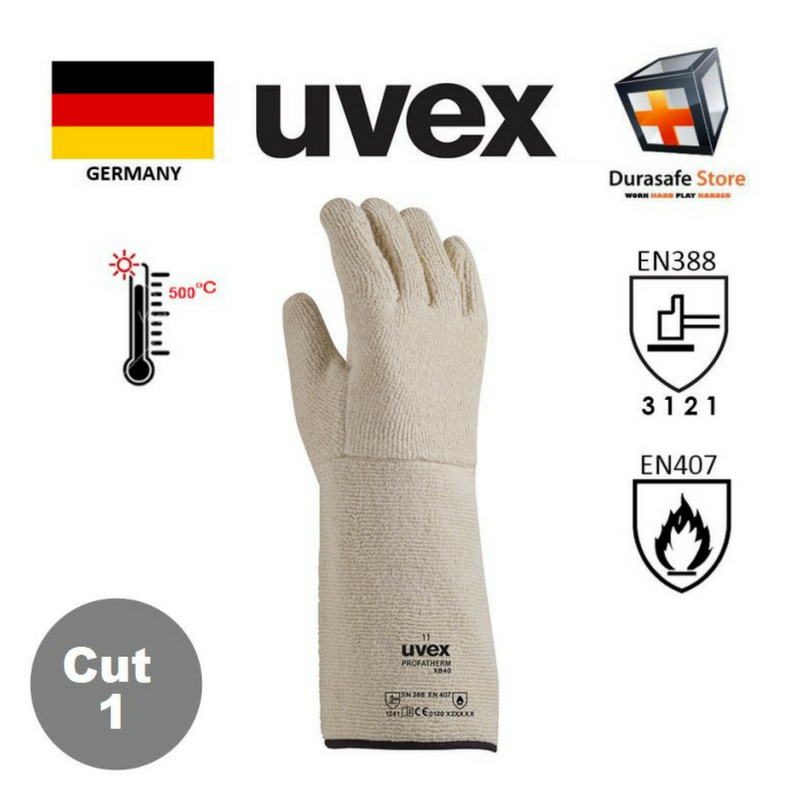 UVEX 60595 Profatherm XB40 250ºC Heat Resistant Terry Safety Gloves White 40cm