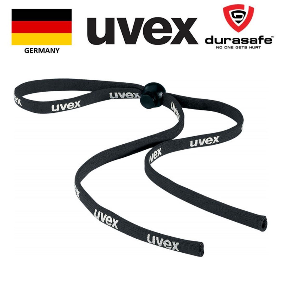 Headband suitable for all Uvex temple spectacles (except duoflex side pieces). To attach, simply slide the band onto the side pieces. The size can be adjusted with the stopper.