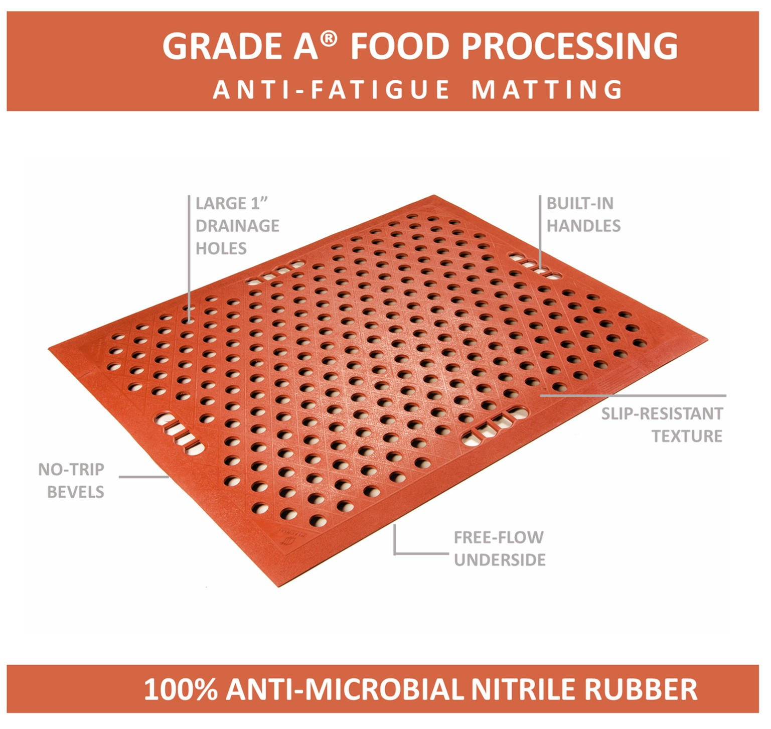 WEARWELL 482 Grade A Food Production Anti-Fatigue Rubber Floor Mat Terra Cotta 1/2″ x 30″ x 60″