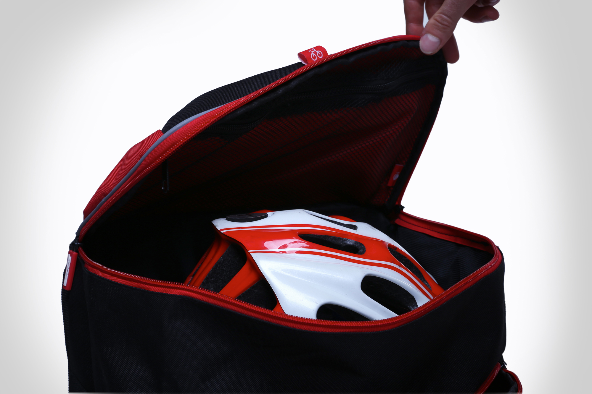 The bag has been cleverly designed so that each compartment is accessed in a different direction to help maximise space and functionality.
